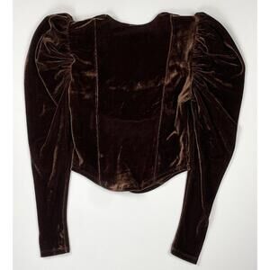 Free People Hold Me Top Women’s Blouse Brown Velvet Puff Sleeve Size XS