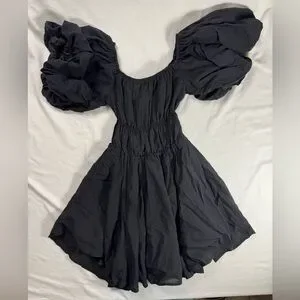 Step out in style with this elegant black dress featuring dramatic puff sleeves. Perfect for any occasion, this dress combines sophistication with a modern twist. Dress is missing tie belt.