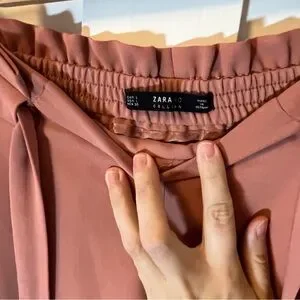 Chic wide-leg pants in a soft blush tone. Perfect for versatile styling.