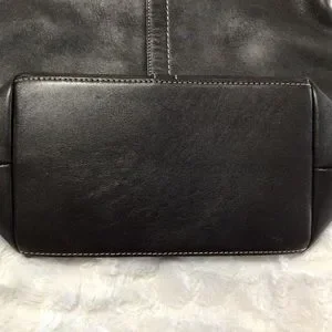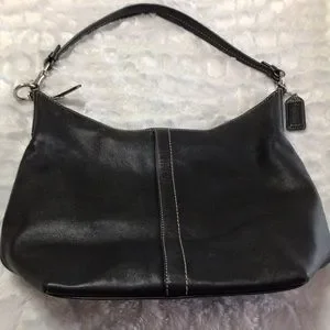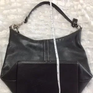 Elegant black leather shoulder bag. Features a sleek design. Perfect for any occasion.