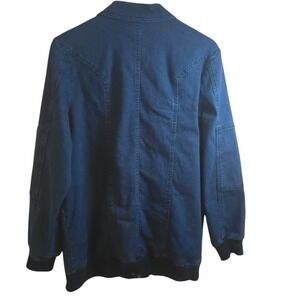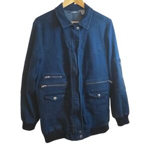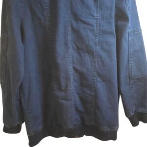 Roamans 16W Denim Barn Coat Utility Jacket Zip Pockets Dark Wash Cotton Stretch
