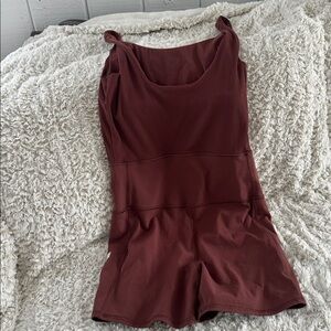 Large brown workout onesie. Shorts and tank top built in with side pockets. Gently used, in great condition