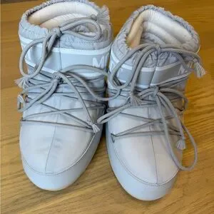 Moon Boot women's snow boots. Featuring a sleek gray design, these boots are perfect for winter adventures. USL 8-9,5. EU 39-41.