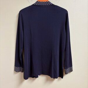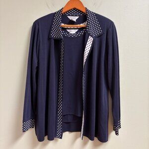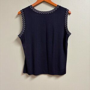 Exclusively Misook Tank Cardigan Set Petite L Quiet Luxury Navy Polka Dot Knit