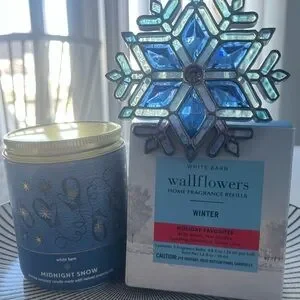 Free Ship, Gift set. White Barn Midnight Snow Candle & Wallflowers & Nightlight
