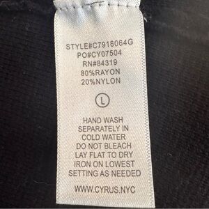 Elegant black cardigan by Cyrus. Open front design. Ideal for layering.