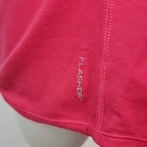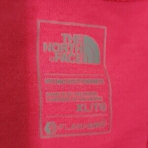Pre-owned The North Face FlashDry racerback tank size XL. Pink-red colored racerback tank with logo towards bottom hem.