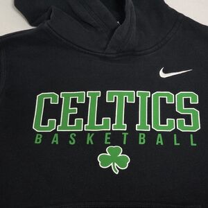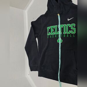 Stylish Nike hoodie for young Celtics fans. Features bold green lettering and a cozy fit.