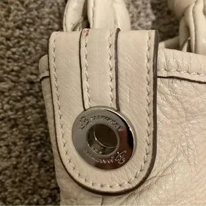 VTG B Makowsky Handbag Pebbled Leather Ivory Hobo Shoulder Bag 14x10”