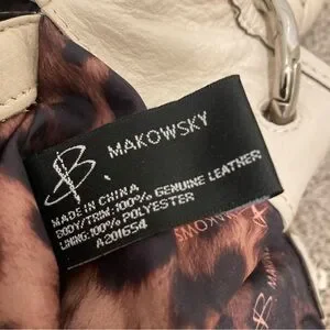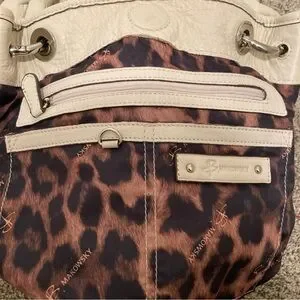 VTG B Makowsky Handbag Pebbled Leather Ivory Hobo Shoulder Bag 14x10” Magnetic Closure Multiple Zip Pockets Interior & Exterior Animal Print Lining