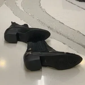 Stylish black ankle boots with gold star accents. Perfect for a bold look. Never worn and no box.