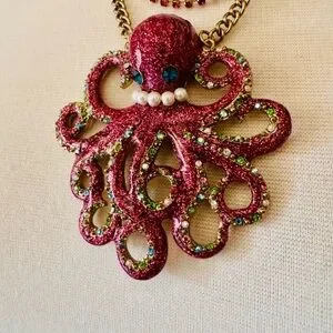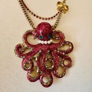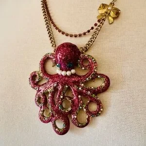 Betsey Johnson Fuchsia and Gold Octopus Necklace