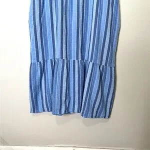 Incredibly cool and cloudlike in 100% cotton, this gauzy textured midi dress is wonderfully crinkled and super versatile in colorful stripes. It's the perfect choice for wherever you go on a hot day.