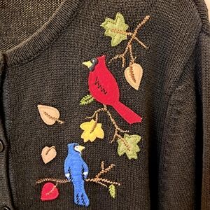 Breckenridge Black Cardigan 1X Cardinal Bluejay Cottage Core Vintage Embroidered