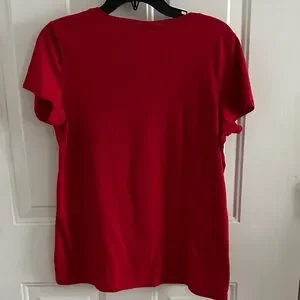 Celebrate the season with this festive red short sleeve tee featuring a charming Christmas tree design. Perfect for casual holiday gatherings.