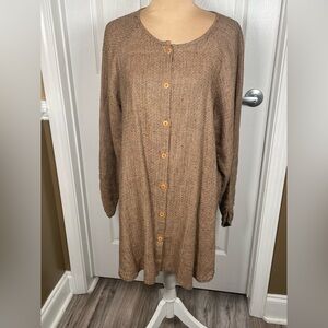 FLAX 100% Linen Long Button Cardigan Lagenlook Brown Sz Medium