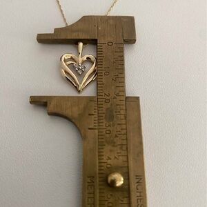 Beautiful Vintage solid 10k yellow Gold Double Heart Diamond Pendant And 10k Gold fine Necklace , Length: 19” , Preowned condition very well taken care of 💕