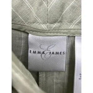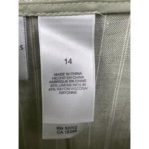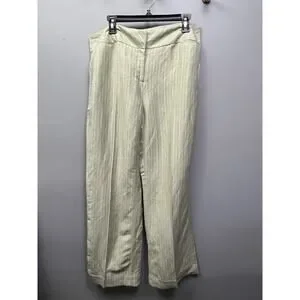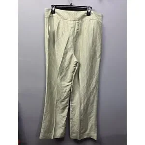 NWT Emma James Women Pants 14 Green Stripes Linen Blend Mid Rise Straight Leg