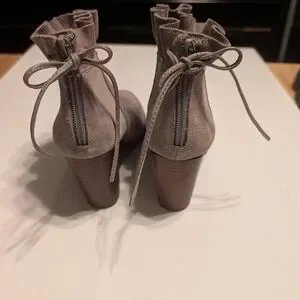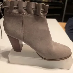 Crown & Ivy Morcella Ruffle Ankle Boots - Light Gray Suede