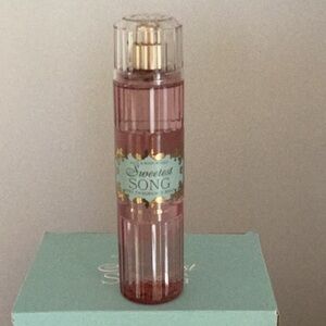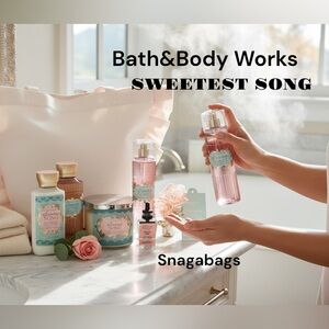 Experience the Sweetest Song collection. Includes body wash, lotion, and mist in elegant pink and gold packaging 3 wick Candle,Floral plug in with refill and a tote bag.