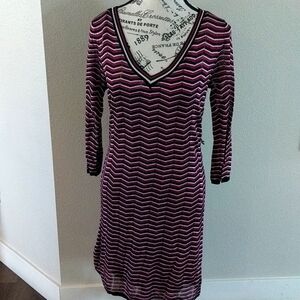 New With Tag Chevron Print Dress, Size Medium, Lined, **Missing Belt**, Polyester Spandex Blend Dry clean, Approximate measurements Chest 32" Waist 30" Length 31".