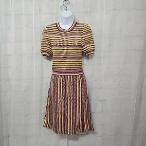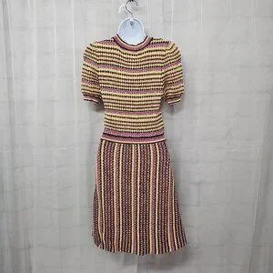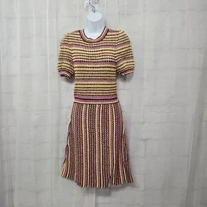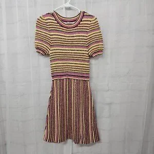 Free People Dress Knit Purple Stripes Twee Retro Mod Bodycon S