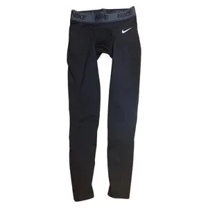 These training tights are new with tags and perfect condition. Nike Dri-Fit technology moves sweat away from your skin for quicker evaporation, helping you stay dry, comfortable and focused. 100% polyester, black and gray pattern. White Nike swoosh on the left hip and an elastic waistband. Approximately 27.5 inch inseam 26 inch waist unstretched.
