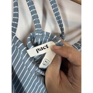 Pact Blue Striped Floral Fit & Flare Strappy Mini Dress Organic Cotton Size XL