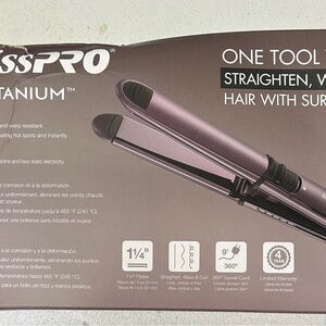 New in the box. Never used. Small damage on box. Achieve salon-quality results with the BaBylissPRO Nano Titanium Prima3000 Hair Styling Iron. This sleek purple tool offers advanced styling with its stainless steel design.