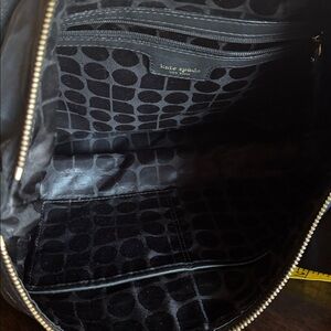 Inside has one zipper pocket with kate spade logo on it, and two slip pockets