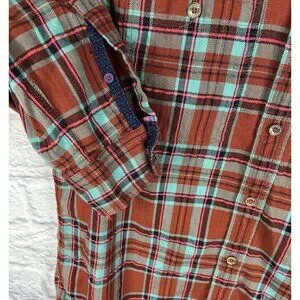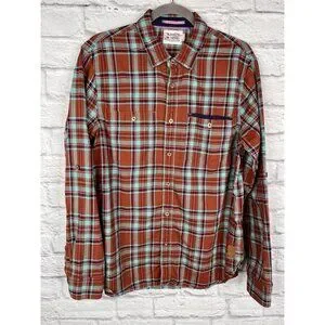 SCOTCH AND SODA AMSTERDAM Men's Burnt Orange Turquoise Plaid Button Down Large