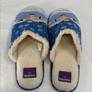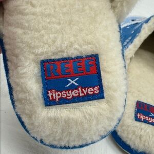 Reef x Tipsy Elves Slippers Wm Large EU 38/39 Blue Nude Naked Skating Santa Snow