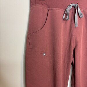 FIGS medical uniform scrub pants for women in mauve pink size M medium.The FIONx Kade has a yoga waistband, flattering back yoke and four super helpful pockets. And it's made with our proprietary FIONx™ fabric. Total of four pockets: Two trouser pockets, Two side cargo pockets, Classic fit, Straight leg, yoga waistband with adjustable drawcord, Flattering back yoke for a more fitted look, Side slits at ankles. Engineered with Technical Comfort