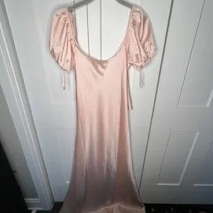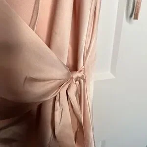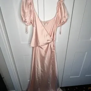 WAYF The Bea Faux Wrap V-Neck Dress New Satin Maxi Formal Wedding PINK