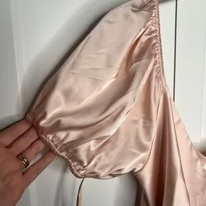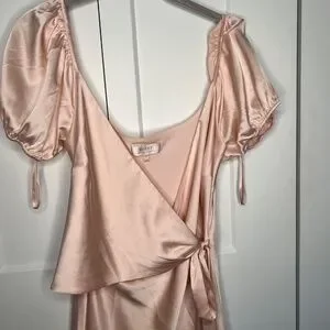 WAYF The Bea Faux Wrap V Neck Satin Maxi Formal Gown Women's Size Medium