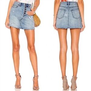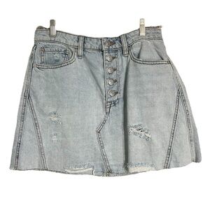 Free People We The Free Breezy Mini Jean Skirt Button Fly Distressed Sz 28 EUC