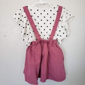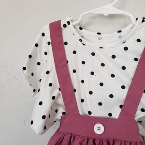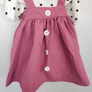 Sparkle in Pink Little Girl Medium Two Piece Set Polka Dot Shirt Pinafore Dress