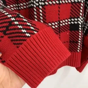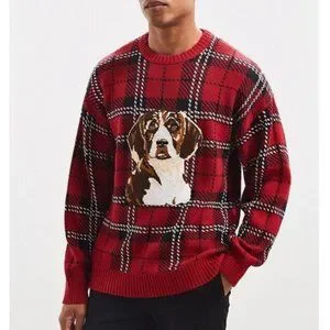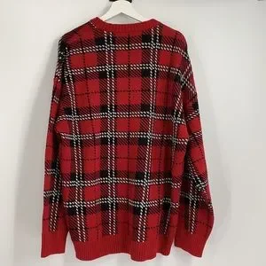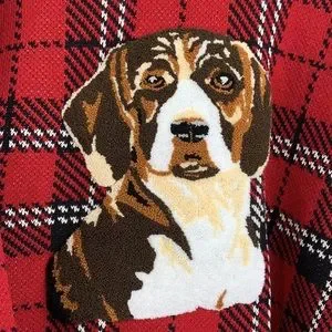 Red plaid crewneck sweater with dog graphic. Comfortable EUC