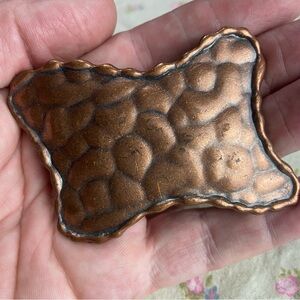 Unique copper trinket dish with a textured design. Perfect for small items or decor.