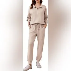 PINSPARK 2 Piece Sets for Women 2025 Fall Travel Outfits Long Sleeve Tracksuit Joggers Sets Half Zip Sweatsuit Matching Set