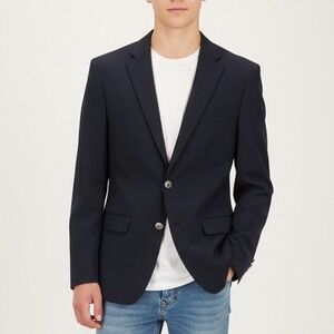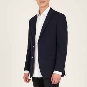 Keywords: Michael Kors blazer, Navy blazer, Wool blend jacket, Mens formalwear, Business attire, Smart casual, Two button blazer, Notched lapel, Classic fit, Professional, Evening wear, Workwear