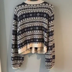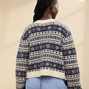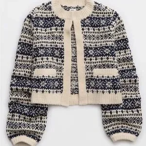 Aerie Chelsea Jacket Women's Navy and Cream Fair Isle Sweater size XL