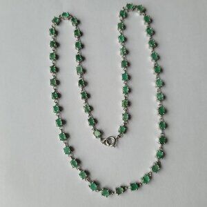 Emerald Necklace 53 Natural Stones Over 12ct May Birthstone 20" Long Sterling