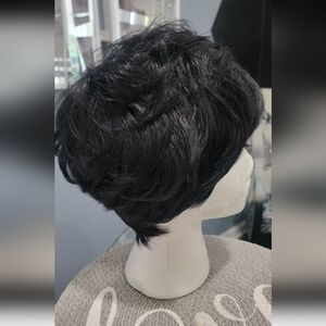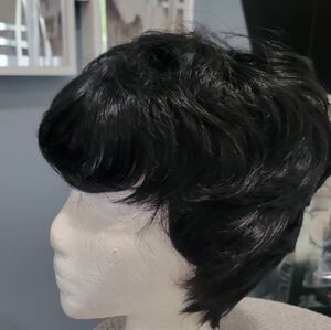 Elegant black wig for women, perfect for any occasion. Enhance your style with this sleek and versatile hairpiece.