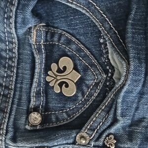 Stylish Dereon jeans featuring aqua embroidery on the pocket. Straight leg cut. Perfect for casual outings. these have a little wear please see pictures. The decorations are missing on the pockets, The tag in the back is worn out and there's a little bit of wear on the right knee especially, I also see just a tiny bit on the left knee but the right knee is worse. I think those can make awesome jorts if you cut them. selling very cheap because of these flaws. please reach out with questions. but the embroidery on the pocket is so awesome and beautiful! ❤️