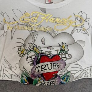 Ed Hardy Christian Audigier Crop Tee Womens Small Studded True Love Rose Graphic
