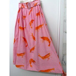 Rachel Antonoff Prawn Shrimp Print Maxi Skirt Vinita Vinnie Pink Pleated Belt 4