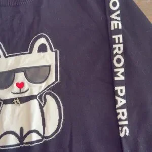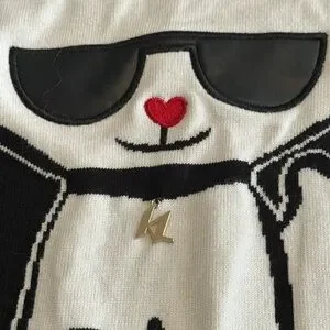 Elegant black top with ribbed collar. Features Karl Lagerfeld branding.