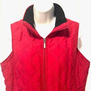 Jane Ashley-Women's Red/Black High Collar Quilted Vest-Medium--Zip Up Front-Pock