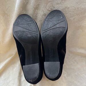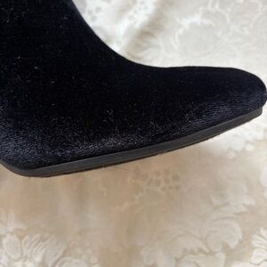 Step out in style with these elegant black velvet ankle boots. Boots have an inside zipper, soft lining and a 4” block heel. Perfect for any occasion, these boots offer both comfort and sophistication. Boots are in very good preowned condition and come from a pet and smoke free home.